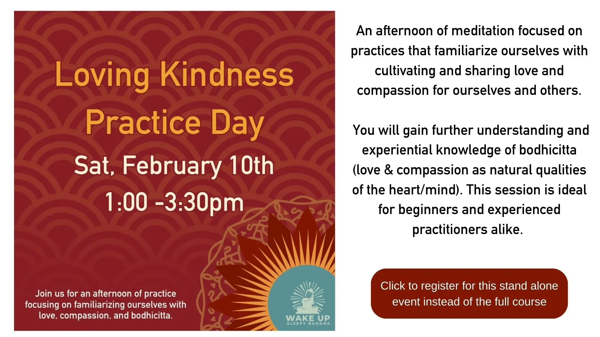 Next, we have an afternoon of meditation focused on practices that familiarize ourselves with cultivating and sharing love and compassion for ourselves and others. You will gain further understanding and experiential knowledge of bodhicitta (love & compassion as natural qualities of the heart/mind).